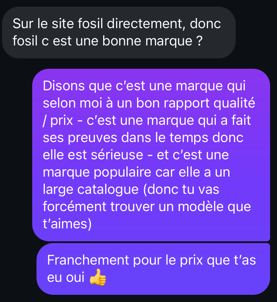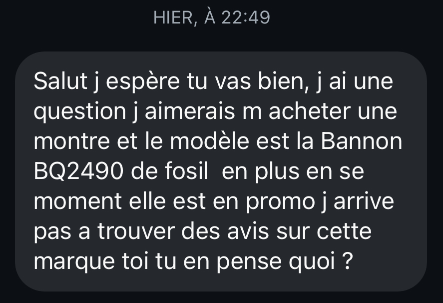 À la suite d’un message sur Instagram, on m’a envoyé une référence montre de la marque Fossil pour avoir mon avis.